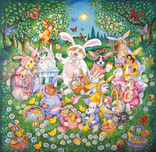 A Doggone Egg-Stravaganza (Pc) White Modern Wood Framed Art Print with Double Matting by Bell, Bill