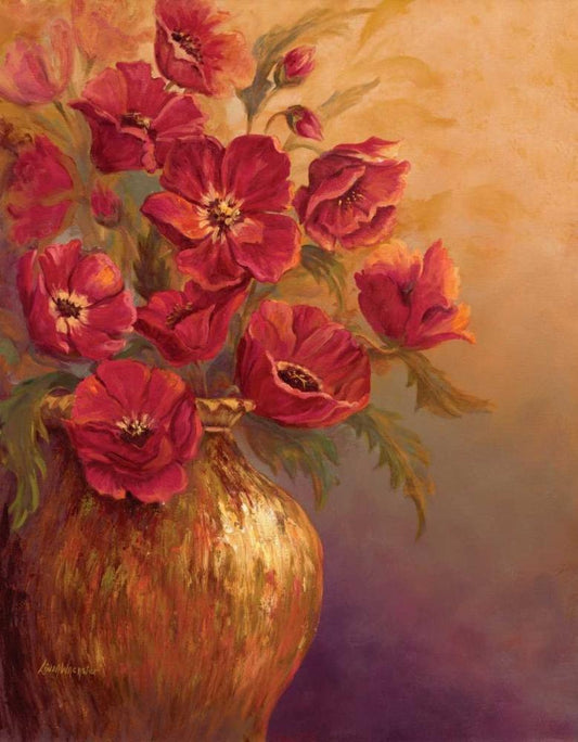 Crimson and Brass I White Modern Wood Framed Art Print with Double Matting by Wacaster, Linda