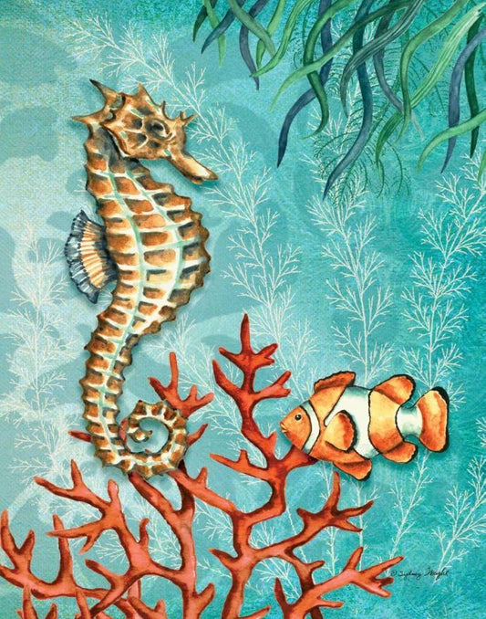 Seahorse White Modern Wood Framed Art Print with Double Matting by Wright, Sydney