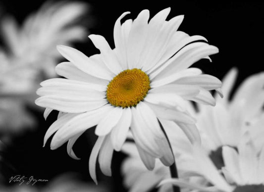 Daisy I BandW White Modern Wood Framed Art Print with Double Matting by Geyman, Vitaly