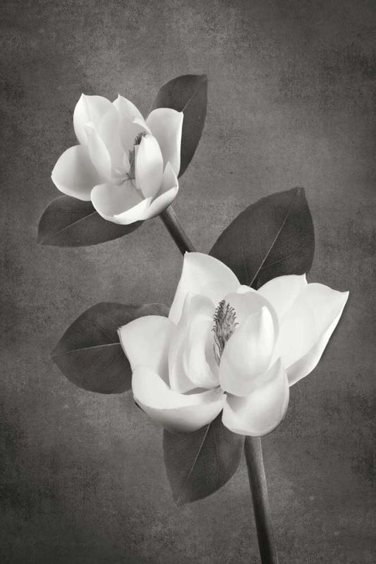 Magnolia Duet II BandW White Modern Wood Framed Art Print with Double Matting by Geyman, Vitaly