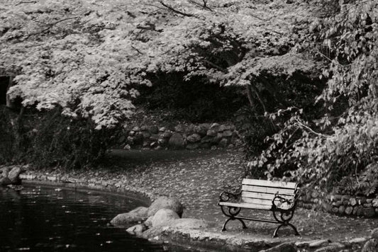Autumn Paradise III BandW White Modern Wood Framed Art Print with Double Matting by Geyman, Vitaly