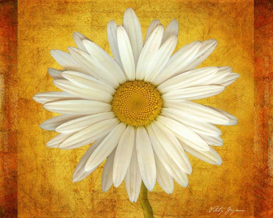 Daisy in Gold White Modern Wood Framed Art Print with Double Matting by Geyman, Vitaly
