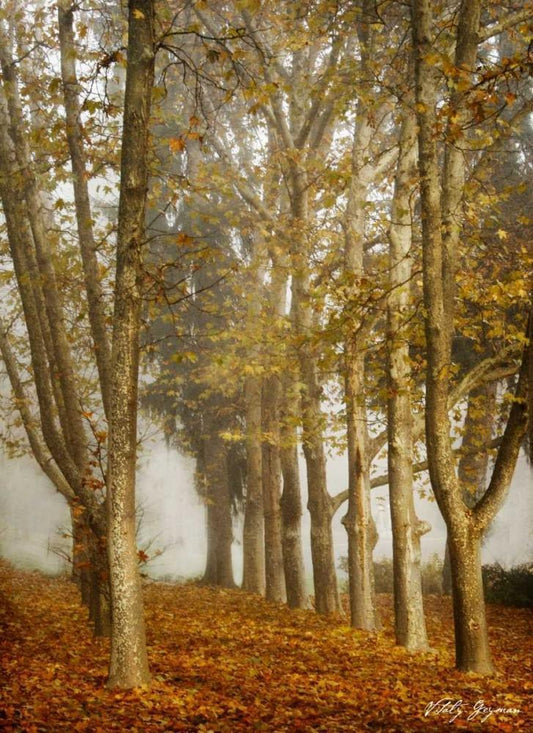 Autumn Mist II White Modern Wood Framed Art Print with Double Matting by Geyman, Vitaly