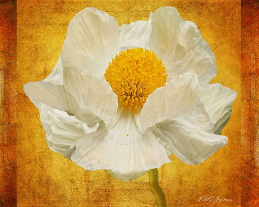 Poppy in Gold White Modern Wood Framed Art Print with Double Matting by Geyman, Vitaly
