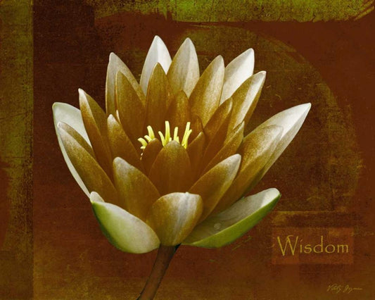 Rustic Lotus Wisdom White Modern Wood Framed Art Print with Double Matting by Geyman, Vitaly