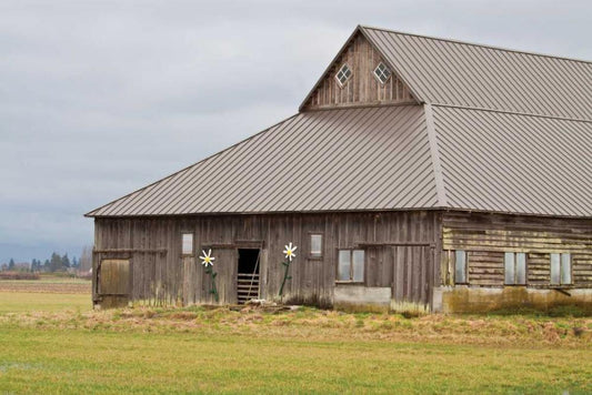 Grey Flower Barn White Modern Wood Framed Art Print with Double Matting by Styber, Dana
