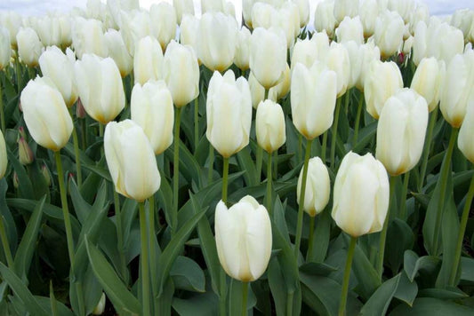 White Tulips I White Modern Wood Framed Art Print with Double Matting by Styber, Dana