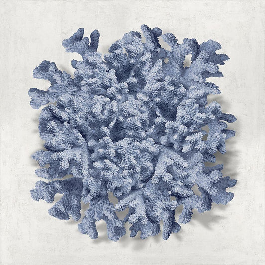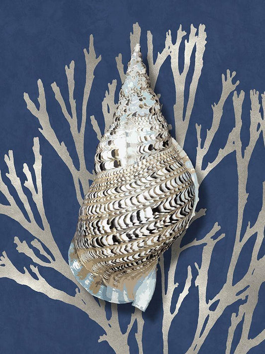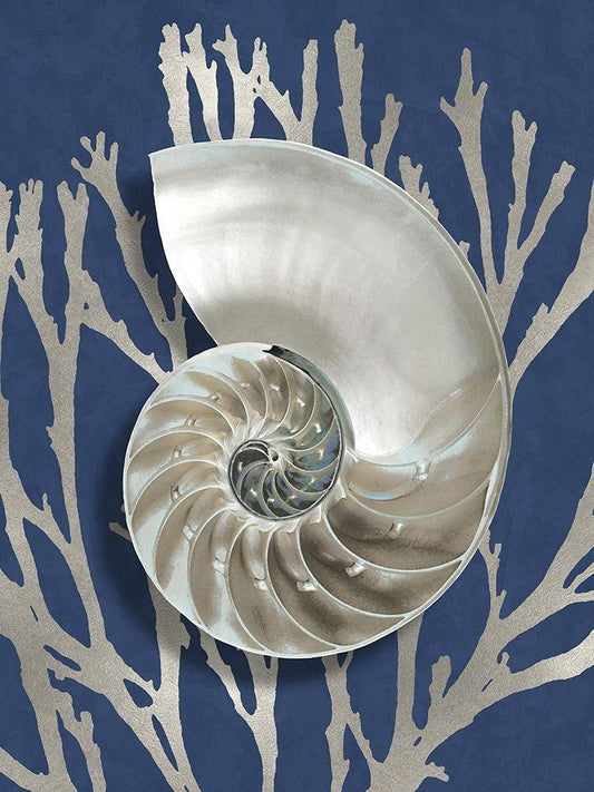 Shell Coral Silver on Blue I White Modern Wood Framed Art Print with Double Matting by Kelly, Caroline