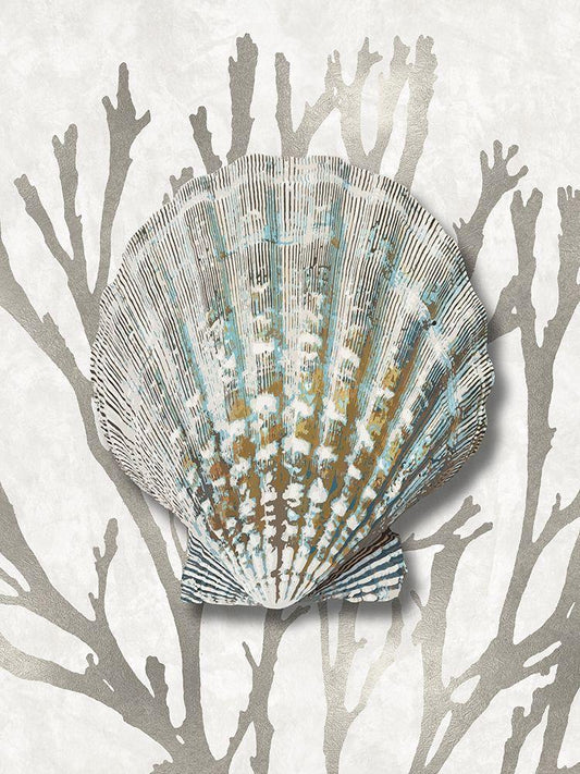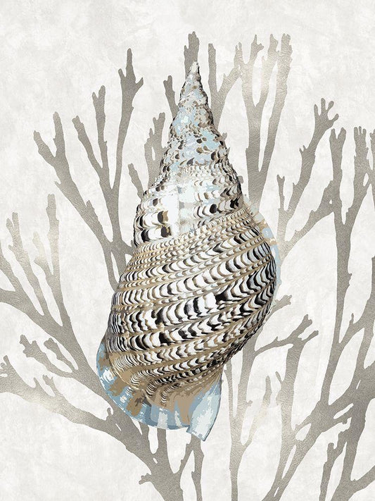 Shell Coral Silver I White Modern Wood Framed Art Print with Double Matting by Kelly, Caroline