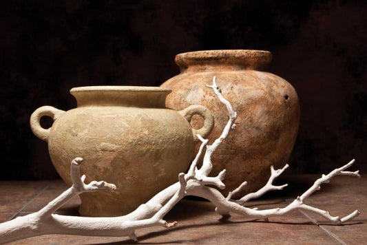 Pottery with Branch I White Modern Wood Framed Art Print with Double Matting by McNemar, C. Thomas