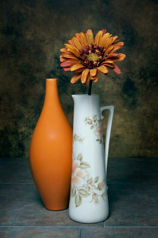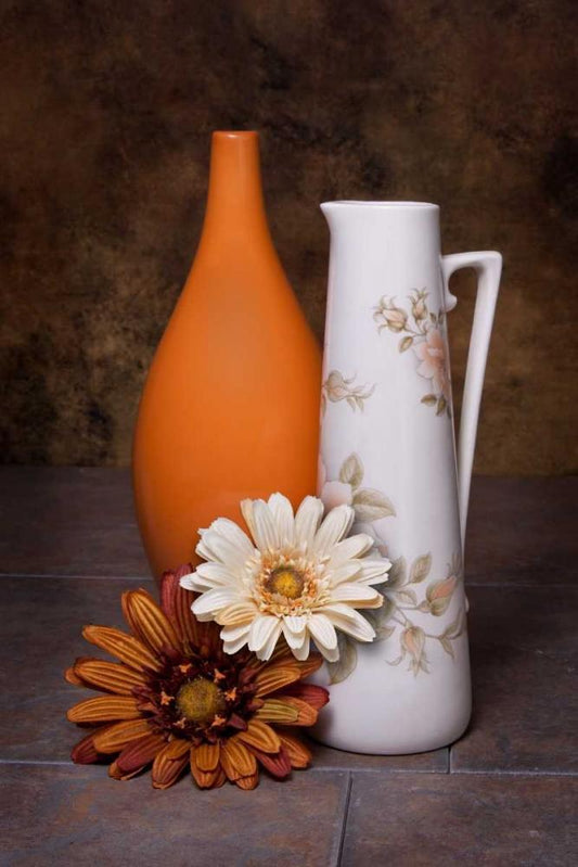 Orange Vase with Pitcher II White Modern Wood Framed Art Print with Double Matting by McNemar, C. Thomas
