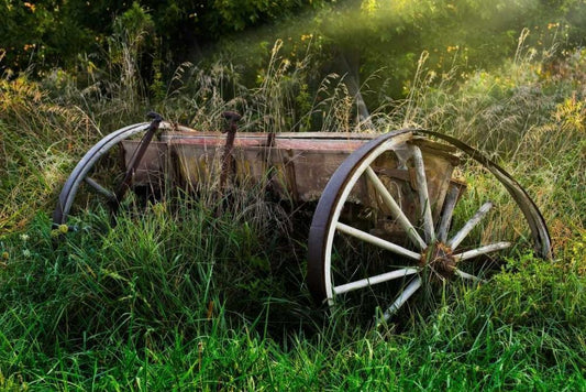 Abandoned Wagon White Modern Wood Framed Art Print with Double Matting by McNemar, C. Thomas