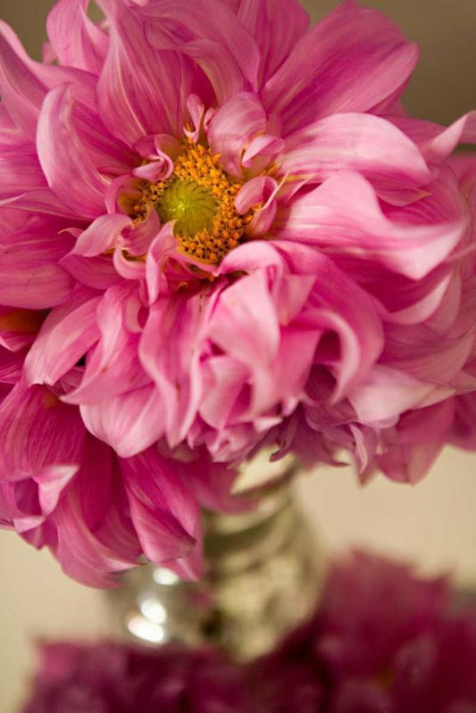 Orange Dahlia White Modern Wood Framed Art Print with Double Matting by Millet, Karyn
