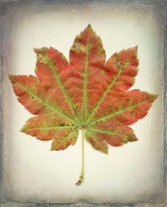 Maple Leaf I White Modern Wood Framed Art Print with Double Matting by Mahan, Kathy
