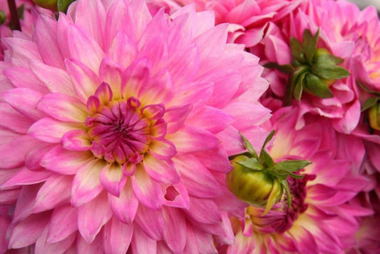 Pink Dalhia I White Modern Wood Framed Art Print with Double Matting by Love, Maureen