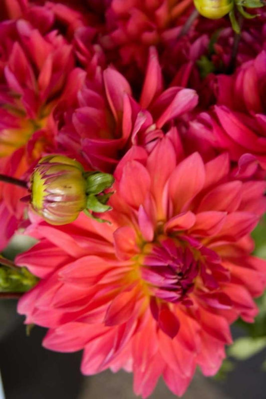 Fuschia Dalhia I White Modern Wood Framed Art Print with Double Matting by Love, Maureen