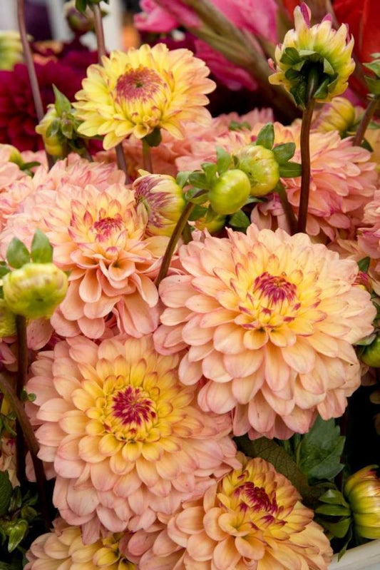 Peach Dalhia III White Modern Wood Framed Art Print with Double Matting by Love, Maureen