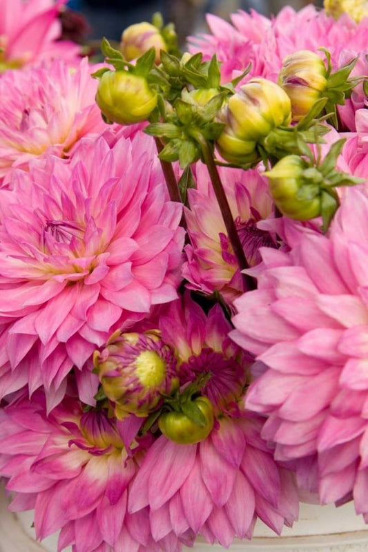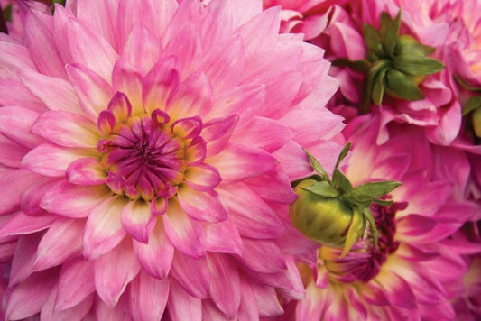 Pink Dalhia III White Modern Wood Framed Art Print with Double Matting by Love, Maureen