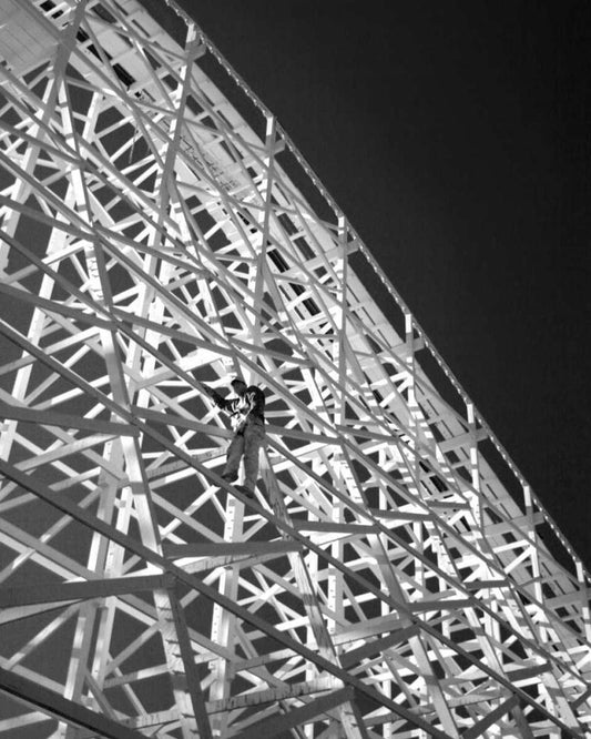 Safety Check I White Modern Wood Framed Art Print with Double Matting by Larson, Scott