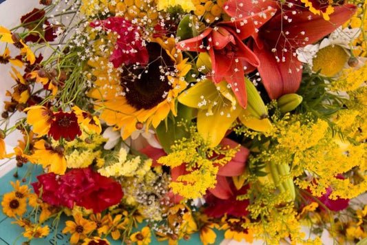Summer Bouquet I White Modern Wood Framed Art Print with Double Matting by Love, Maureen