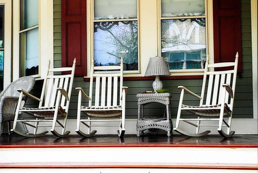 Rockers on the Porch I White Modern Wood Framed Art Print with Double Matting by Hausenflock, Alan