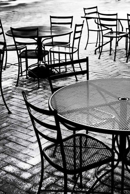 Tables and Chairs I White Modern Wood Framed Art Print with Double Matting by Hausenflock, Alan