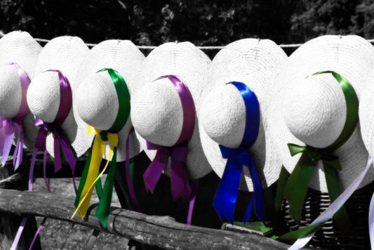 Fancy Hats I White Modern Wood Framed Art Print with Double Matting by Hausenflock, Alan