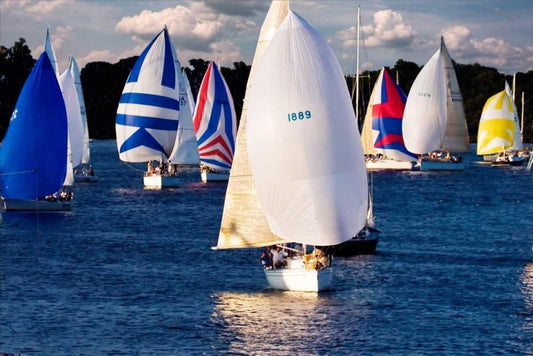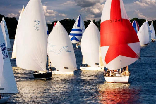 Beaufort Sails I White Modern Wood Framed Art Print with Double Matting by Hausenflock, Alan