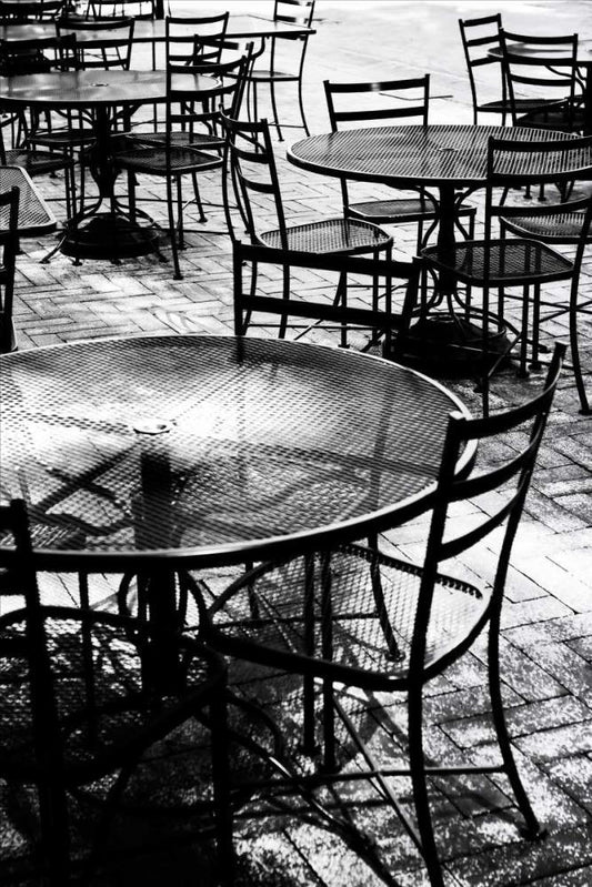 Tables and Chairs II White Modern Wood Framed Art Print with Double Matting by Hausenflock, Alan