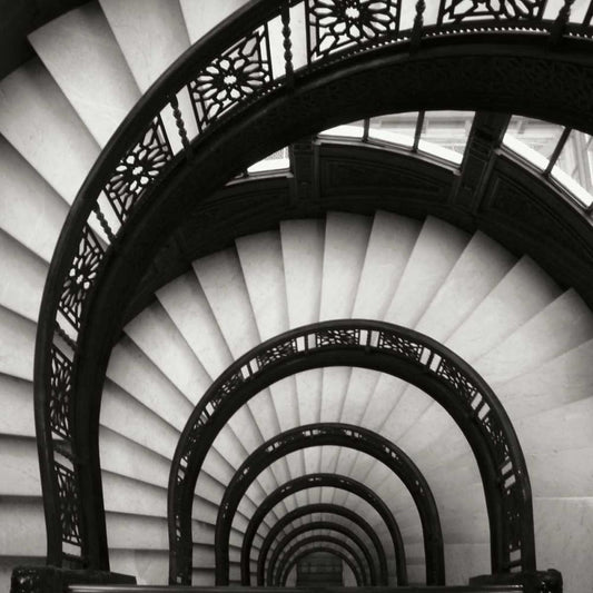 Rookery Stairwell Sq. White Modern Wood Framed Art Print with Double Matting by Christensen, Jim