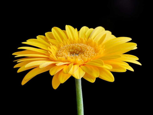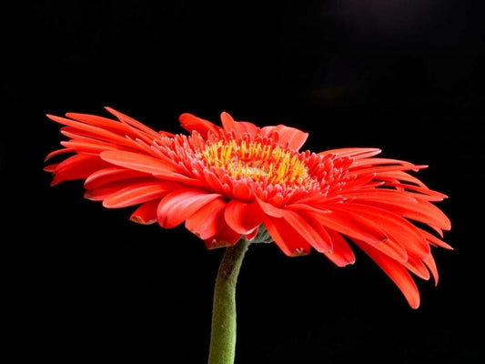 Drops on Gerber I White Modern Wood Framed Art Print with Double Matting by Christensen, Jim