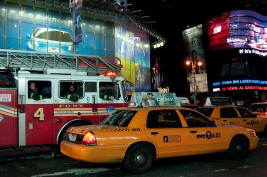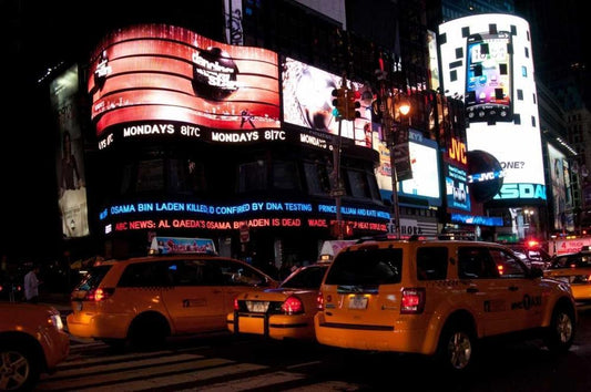 News in Times Square I White Modern Wood Framed Art Print with Double Matting by Berzel, Erin