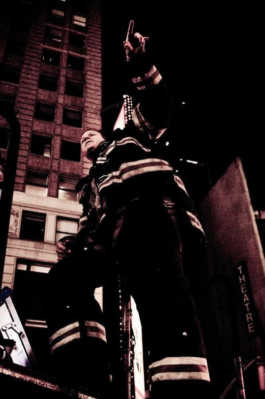 FDNY Firefighter II White Modern Wood Framed Art Print with Double Matting by Berzel, Erin