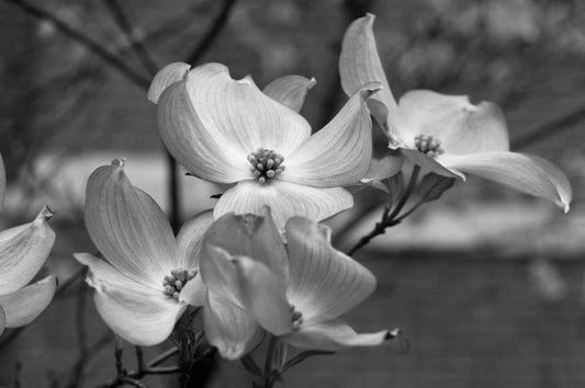 Dogwood Blossoms I BW White Modern Wood Framed Art Print with Double Matting by Berzel, Erin