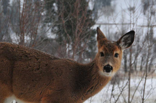 Winter Doe I White Modern Wood Framed Art Print with Double Matting by Berzel, Erin