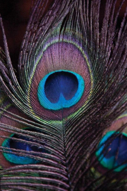 Peacock Feathers II White Modern Wood Framed Art Print with Double Matting by Berzel, Erin