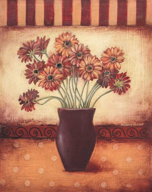 Red Daisies White Modern Wood Framed Art Print with Double Matting by Poloson, Kimberly