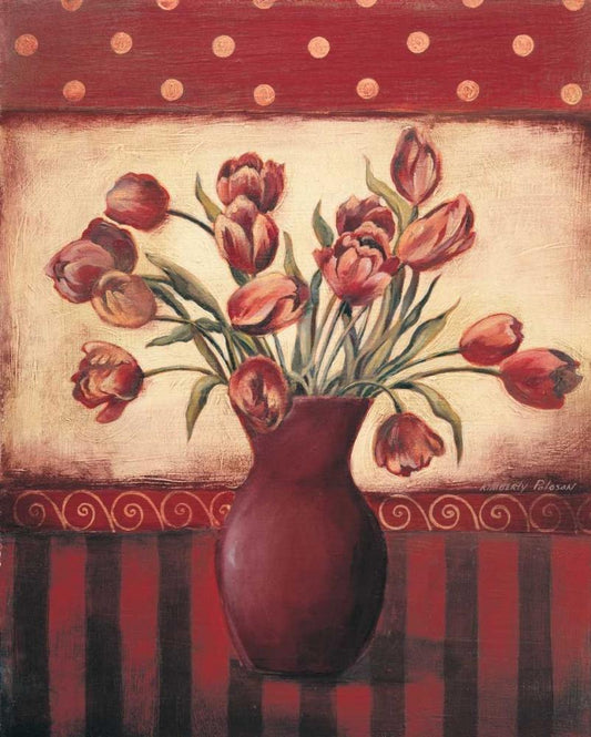 Red Tulips White Modern Wood Framed Art Print with Double Matting by Poloson, Kimberly