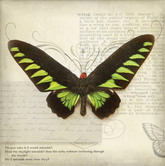 Butterflies Script III White Modern Wood Framed Art Print with Double Matting by Melious, Amy