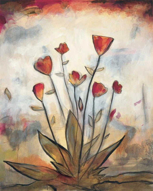 Poppy Garden I White Modern Wood Framed Art Print with Double Matting by Marque, Lucia
