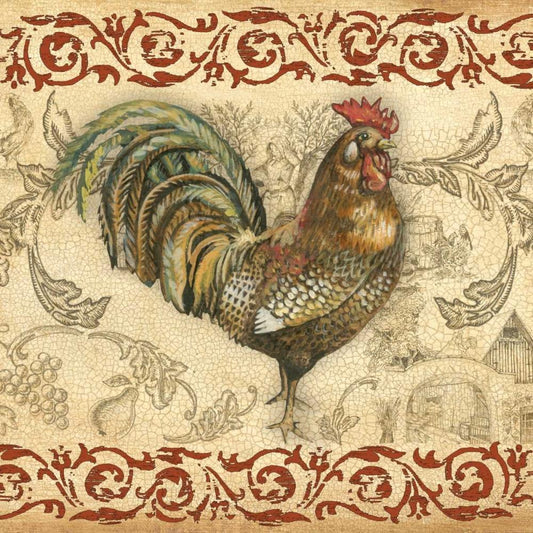 Toile Rooster II White Modern Wood Framed Art Print with Double Matting by Gorham, Gregory