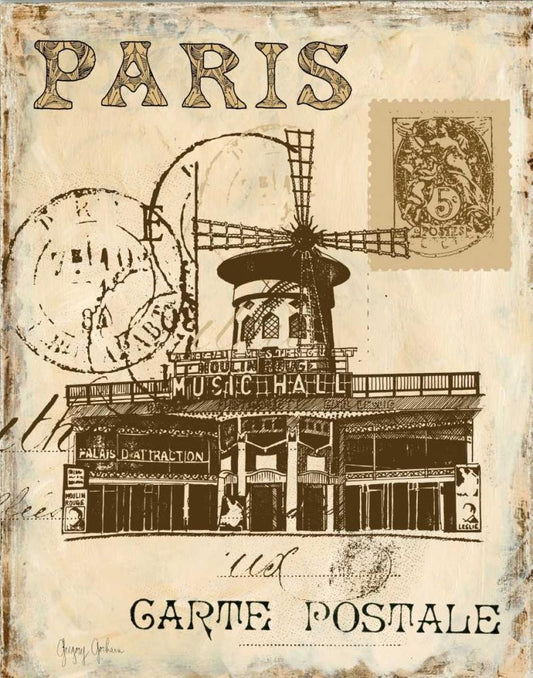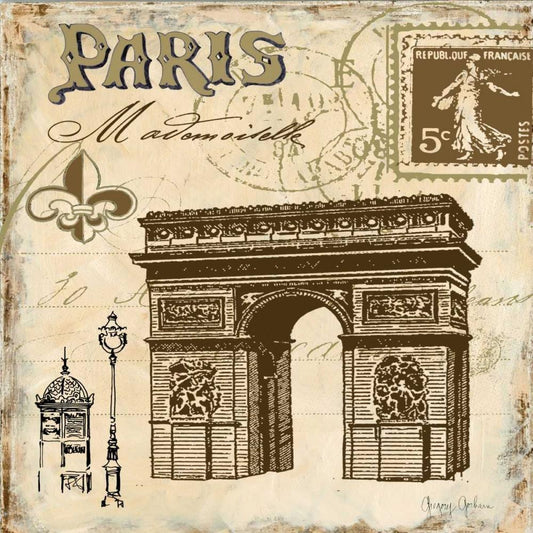 Paris Collage I White Modern Wood Framed Art Print with Double Matting by Gorham, Gregory