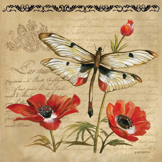 Dragonfly and Poppies White Modern Wood Framed Art Print with Double Matting by Gorham, Gregory