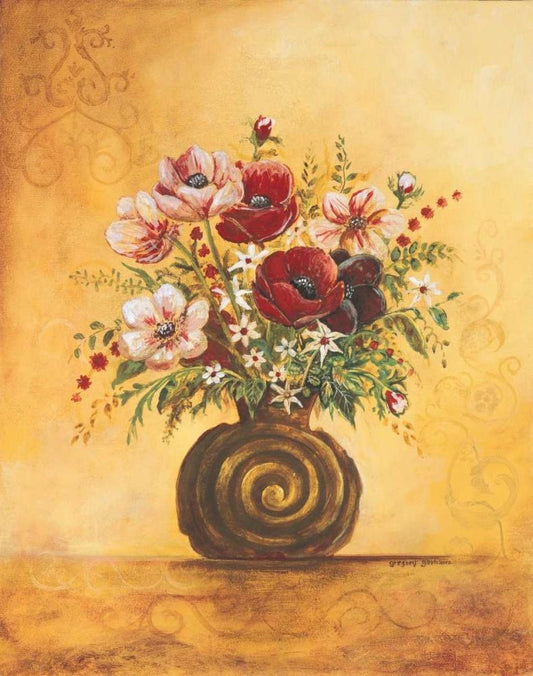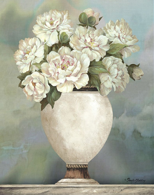 Floral Urn II White Modern Wood Framed Art Print with Double Matting by Gladding, Pamela