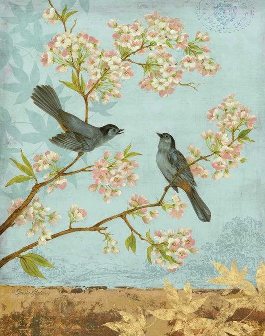 Robins and Blooms Panel White Modern Wood Framed Art Print with Double Matting by Gladding, Pamela