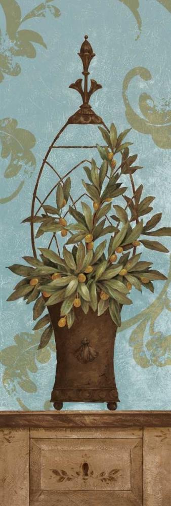 Blue Olive Topiary II White Modern Wood Framed Art Print with Double Matting by Gladding, Pamela