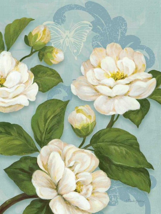 Inspiration Camellias White Modern Wood Framed Art Print with Double Matting by Gladding, Pamela