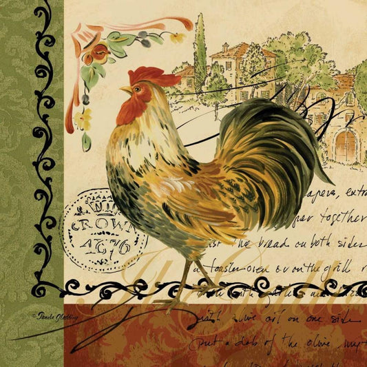 Viva Italia Roosters IV White Modern Wood Framed Art Print with Double Matting by Gladding, Pamela