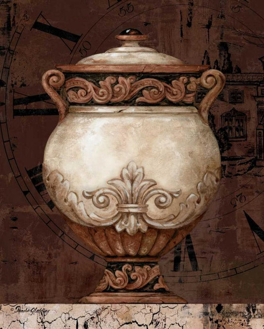 Tuscan Urns I White Modern Wood Framed Art Print with Double Matting by Gladding, Pamela